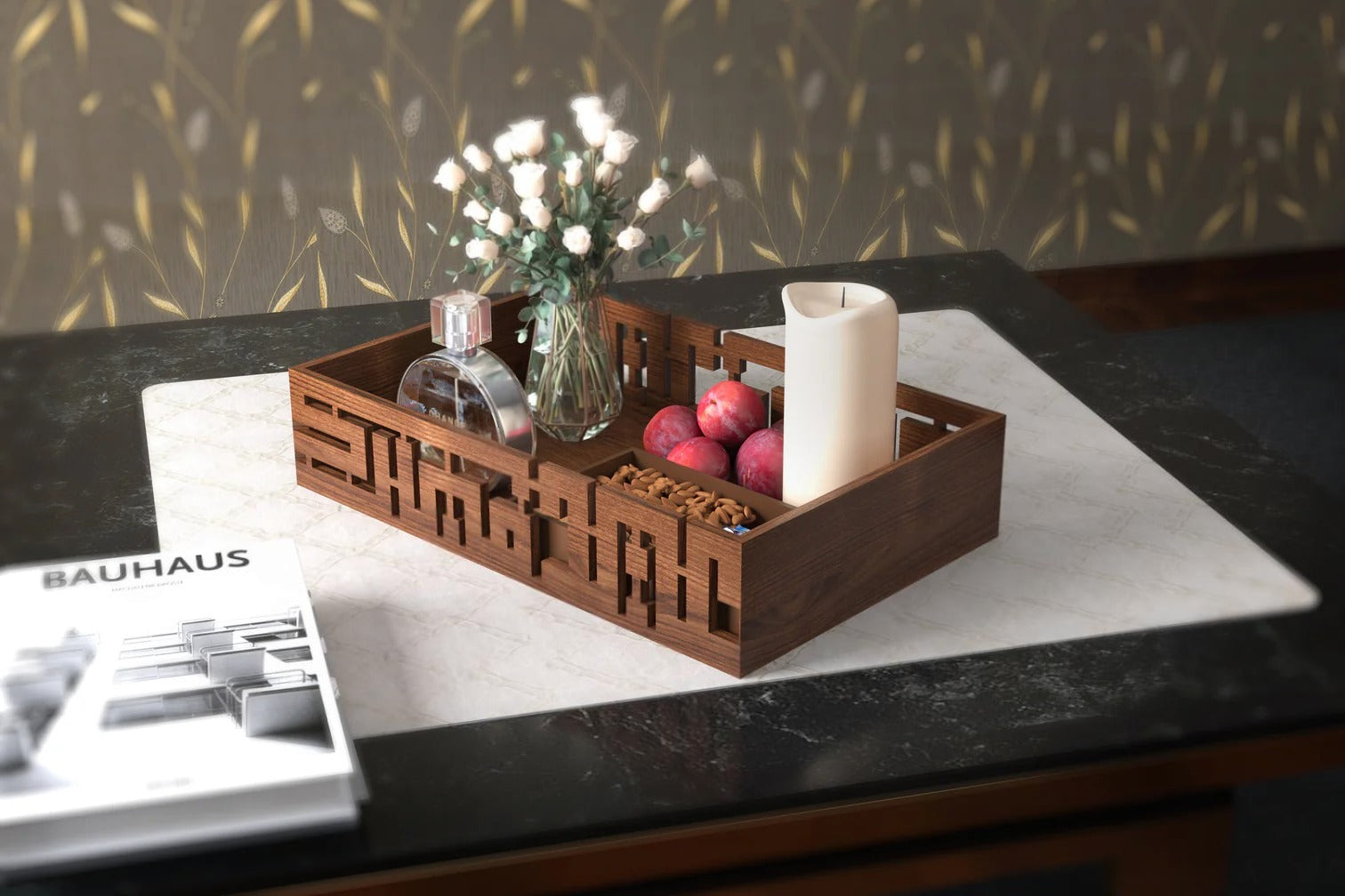 Whether used for serving, organizing, or display, the tray adapts effortlessly to a variety of purposes. Durable yet refined, it brings together practicality and style, making it a functional accent for everyday living or special occasions alike.