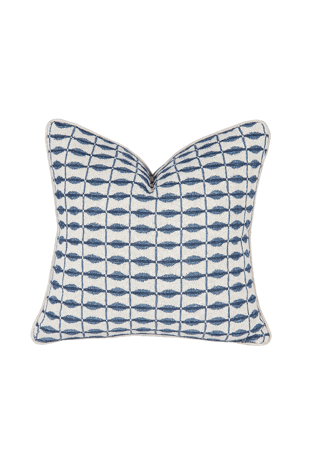 The Isla Cushion captures the essence of Mediterranean style with its light blue patterns set against a soft off-white base. Airy, relaxed, and refined, it brings a coastal charm to any space, perfect for interiors inspired by sunlit shores and effortless living.