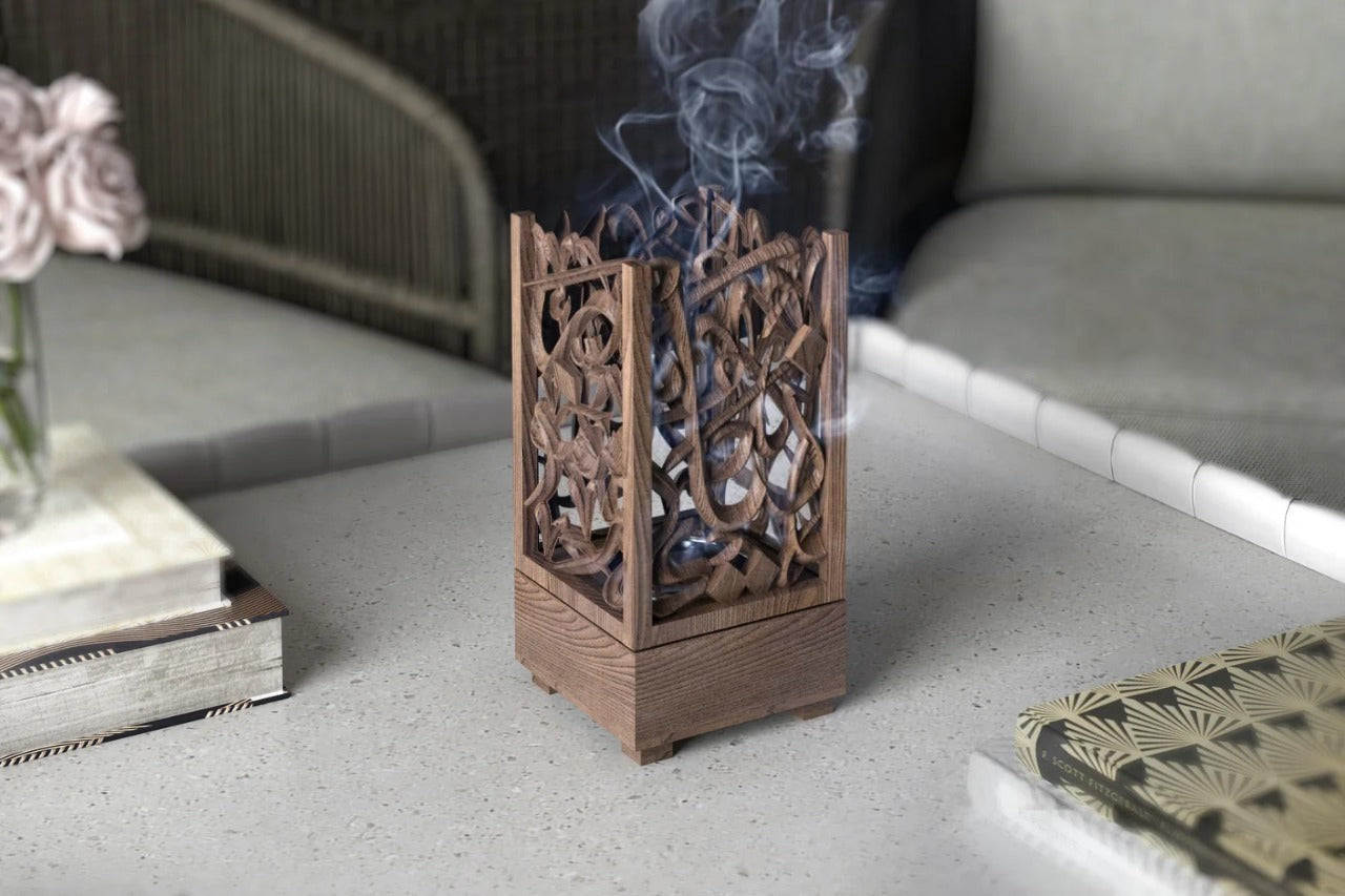 This Madkhan burner combines timeless tradition with natural elegance. The smooth wooden body enhances the beauty of the incense ritual, offering both durability and warmth in design. Its sturdy build ensures safe and steady use, while the rich stain highlights the natural grain of the wood, making each piece uniquely distinctive. Perfect for filling your home with the gentle aroma of bakhoor, this burner doubles as a refined decor piece, where heritage meets sophistication.
