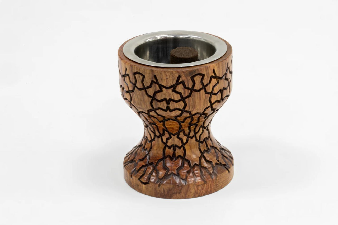This Madkhan burner combines timeless tradition with natural elegance. The smooth wooden body enhances the beauty of the incense ritual, offering both durability and warmth in design. Its sturdy build ensures safe and steady use, while the rich stain highlights the natural grain of the wood, making each piece uniquely distinctive. Perfect for filling your home with the gentle aroma of bakhoor, this burner doubles as a refined decor piece, where heritage meets sophistication.