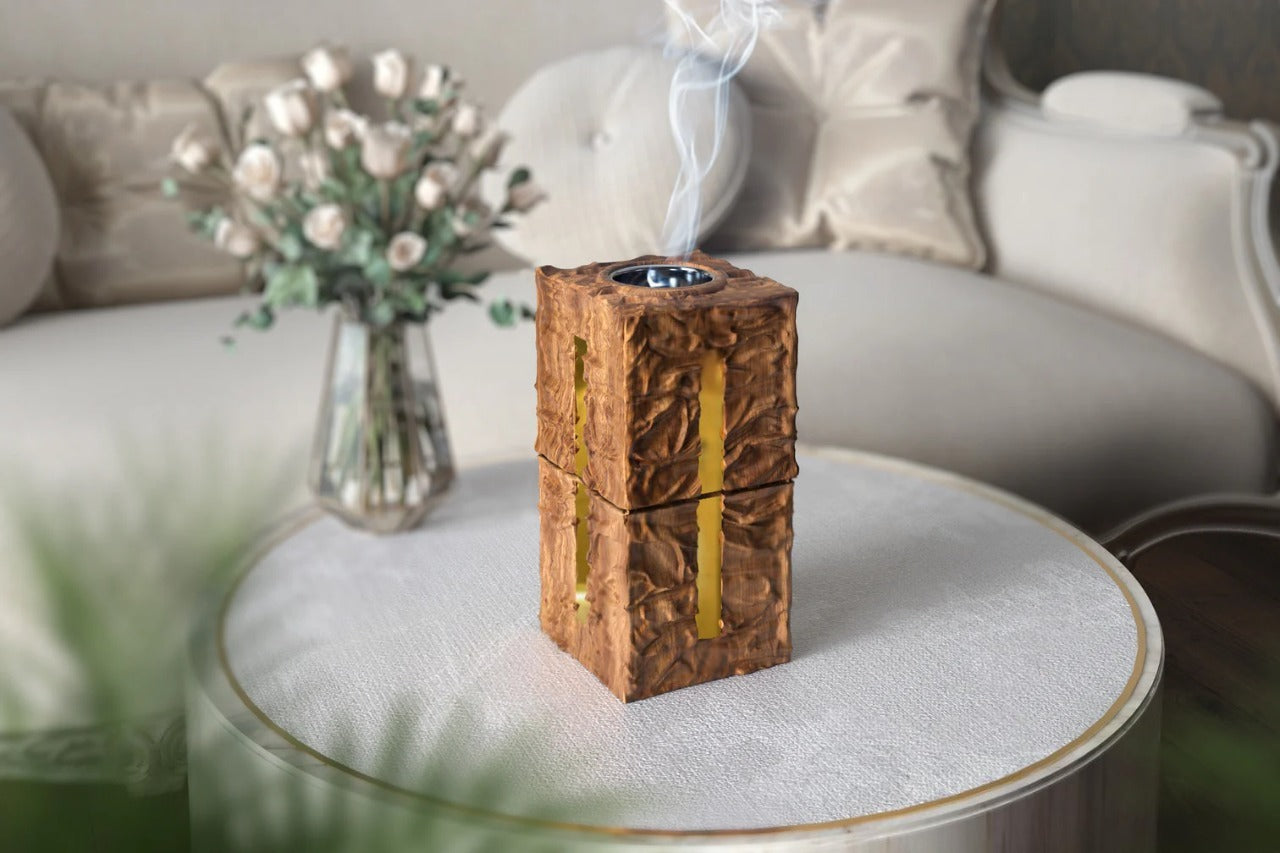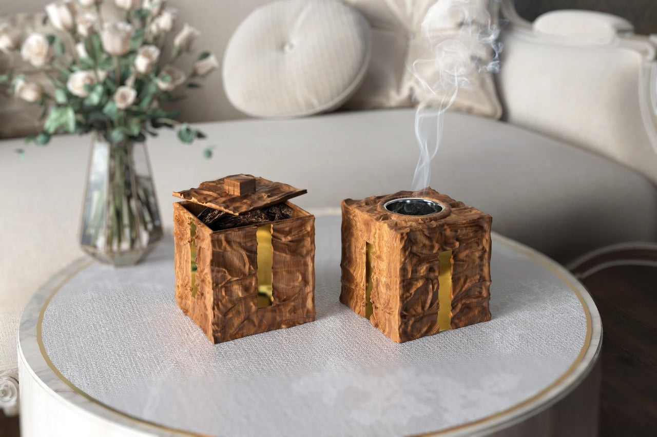 This Madkhan burner combines timeless tradition with natural elegance. The smooth wooden body enhances the beauty of the incense ritual, offering both durability and warmth in design. Its sturdy build ensures safe and steady use, while the rich stain highlights the natural grain of the wood, making each piece uniquely distinctive. Perfect for filling your home with the gentle aroma of bakhoor, this burner doubles as a refined decor piece, where heritage meets sophistication.