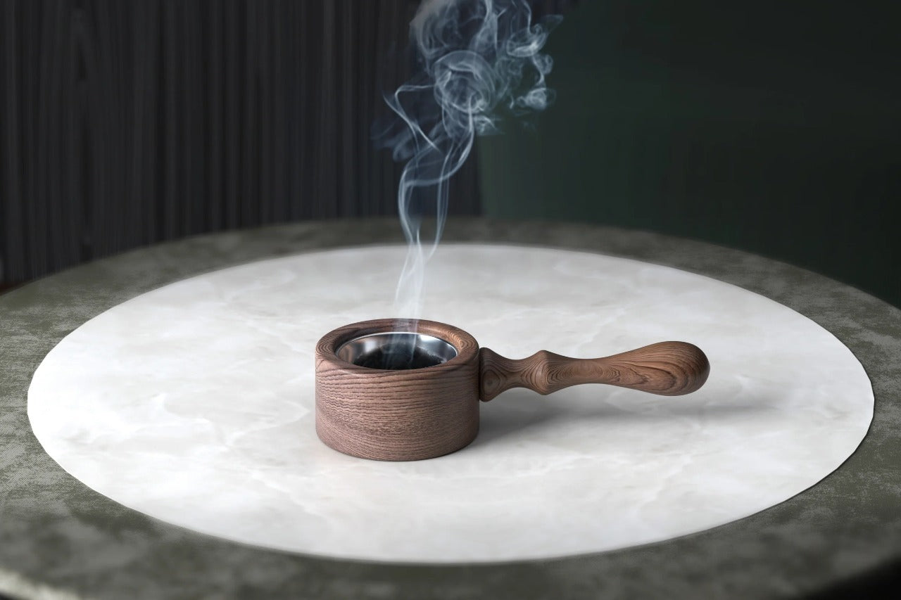 This Madkhan burner combines timeless tradition with natural elegance. The smooth wooden body enhances the beauty of the incense ritual, offering both durability and warmth in design. Its sturdy build ensures safe and steady use, while the rich stain highlights the natural grain of the wood, making each piece uniquely distinctive. Perfect for filling your home with the gentle aroma of bakhoor, this burner doubles as a refined decor piece, where heritage meets sophistication.