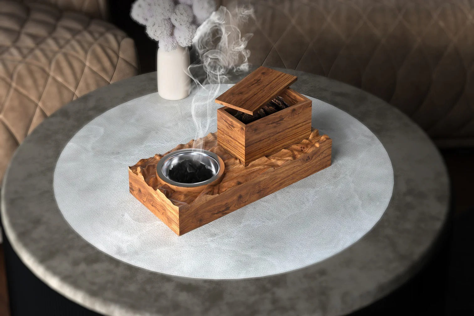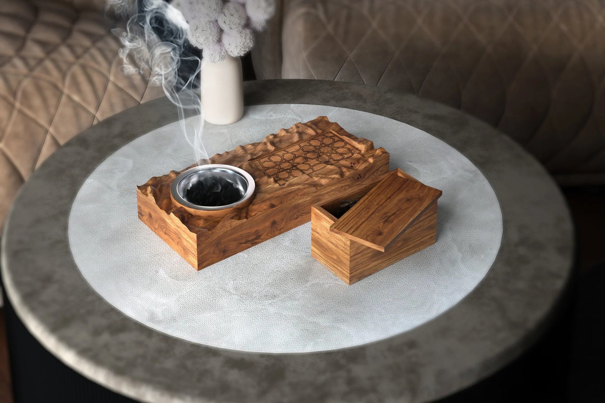 This Madkhan burner combines timeless tradition with natural elegance. The smooth wooden body enhances the beauty of the incense ritual, offering both durability and warmth in design. Its sturdy build ensures safe and steady use, while the rich stain highlights the natural grain of the wood, making each piece uniquely distinctive. Perfect for filling your home with the gentle aroma of bakhoor, this burner doubles as a refined decor piece, where heritage meets sophistication.