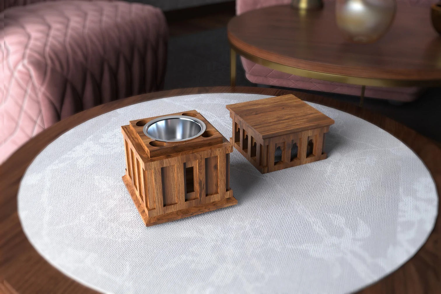 This Madkhan burner combines timeless tradition with natural elegance. The smooth wooden body enhances the beauty of the incense ritual, offering both durability and warmth in design. Its sturdy build ensures safe and steady use, while the rich stain highlights the natural grain of the wood, making each piece uniquely distinctive. Perfect for filling your home with the gentle aroma of bakhoor, this burner doubles as a refined decor piece, where heritage meets sophistication.