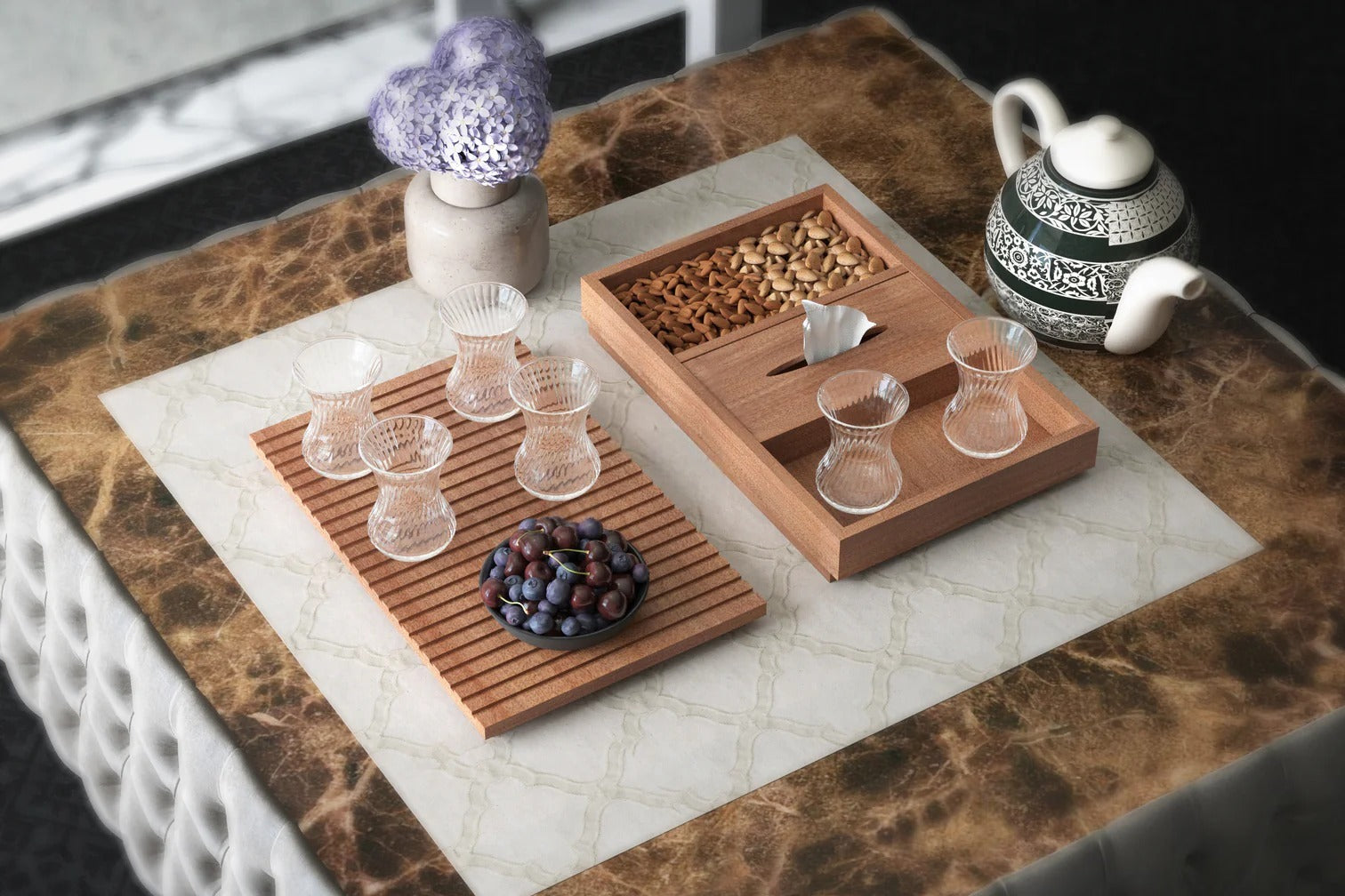 Carefully curated and proudly crafted in the UAE, each set brings together finely made wooden pieces that complement one another with ease. Designed to balance elegance and function, these sets add warmth and refinement to any space.