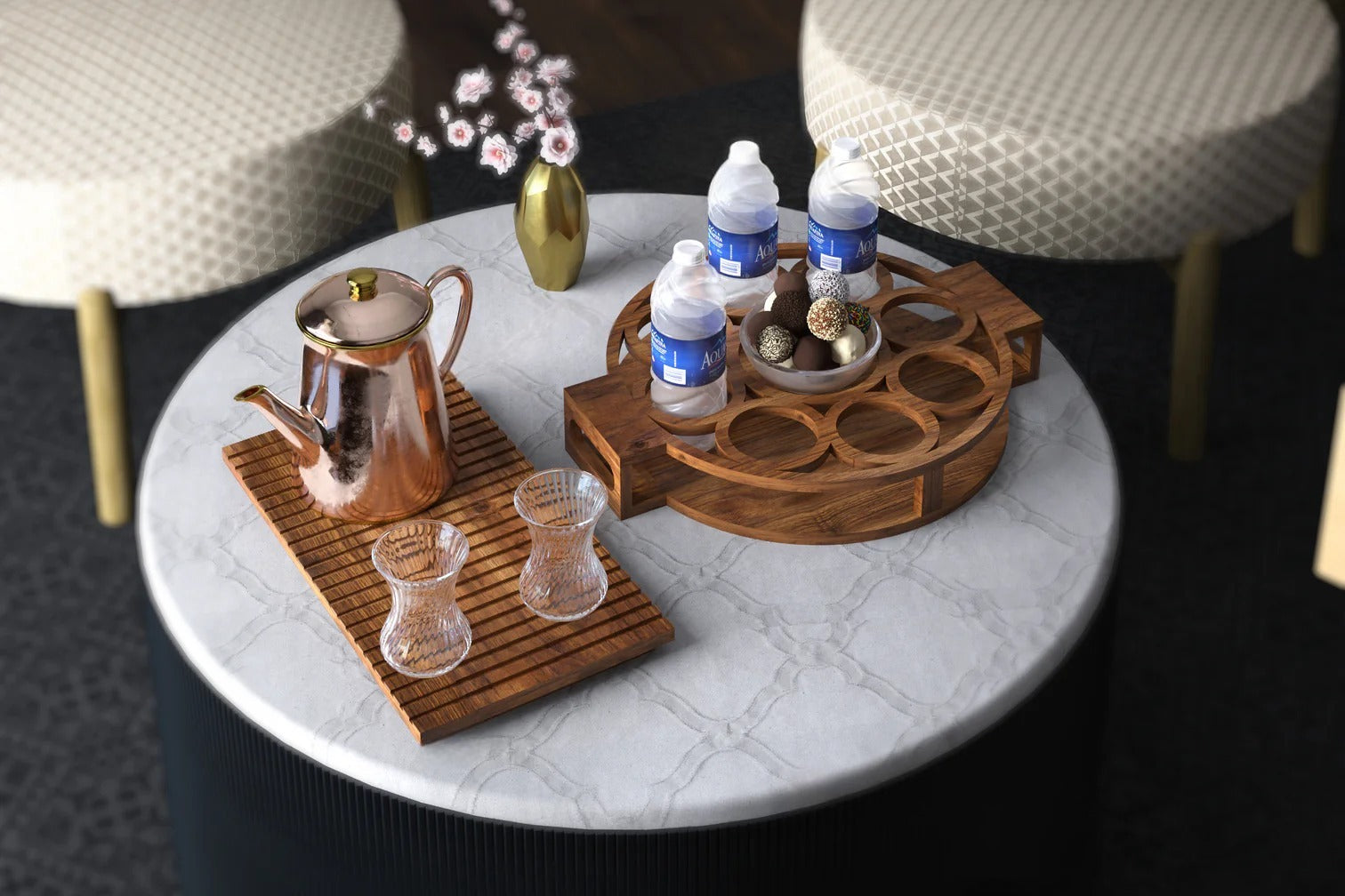 Carefully curated and proudly crafted in the UAE, each set brings together finely made wooden pieces that complement one another with ease. Designed to balance elegance and function, these sets add warmth and refinement to any space.